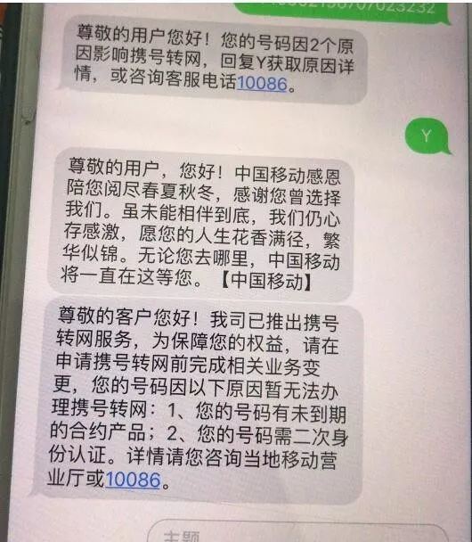 第三张卡 183192*****更是令我生气和愤怒!在我说提出要携号转网的时候,营业员直接停了这张卡,我强烈要求她当场恢复,她就说要下午才能答复我,我在营业厅一直等到下午三点,移动工作人员又说取消的卡无法立即恢复,要48小时才能给答复,而且恢复的手机号码在120天内也无法转网,这种做法不单止无理,给出理由更是十足霸王条款,荒谬至极!